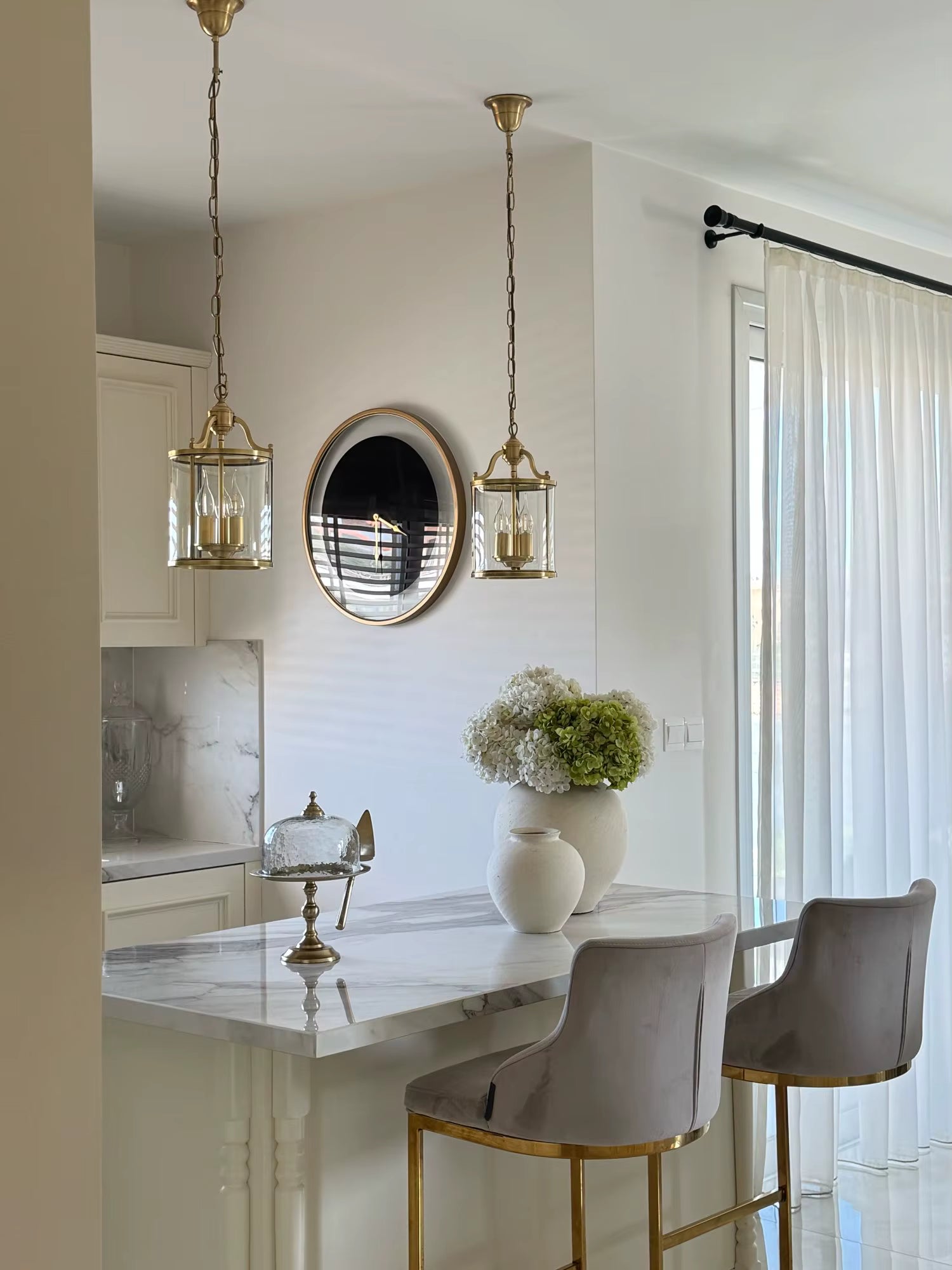 Design vintage raffiné : combinaison élégante du cuivre et du verre artisanal.